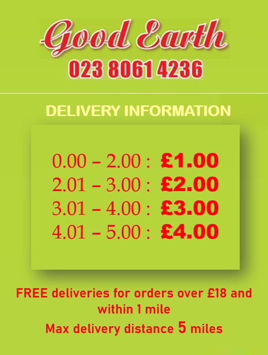 Good Earth @Eastleigh Chinese Takeaway serves variety of delicious Chinese dishes. We’re passionate about delivering hot, great tasting, freshly prepared Chinese food to our customers